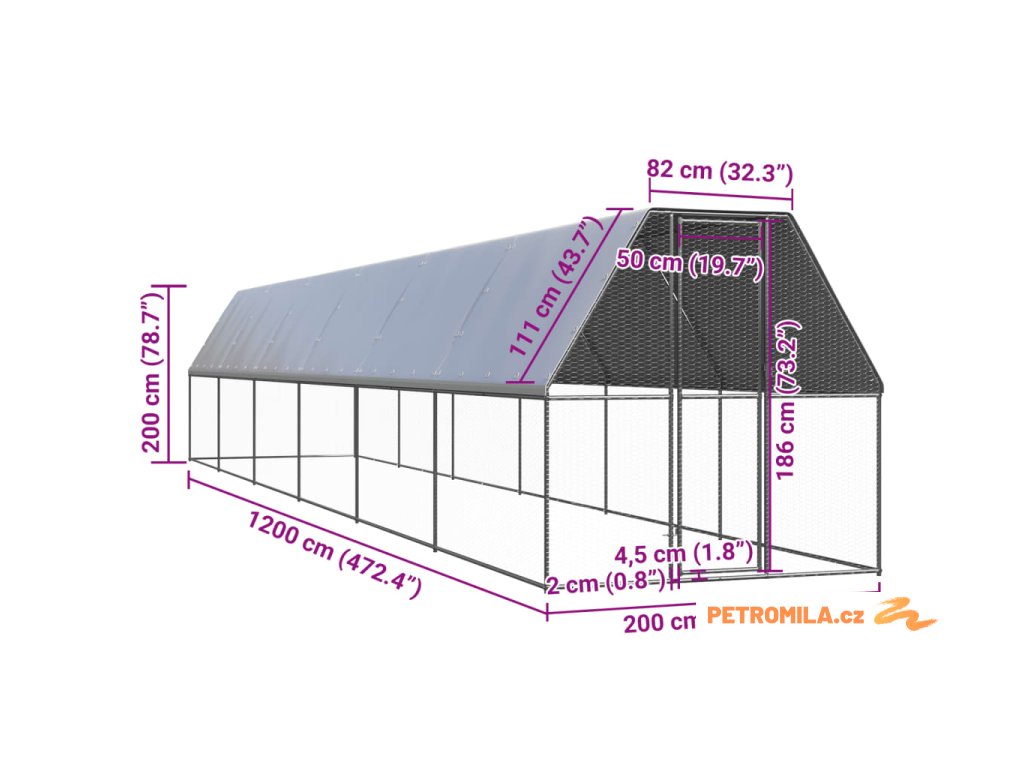 Venkovní klec pro kuřata 2x12x2 m pozinkovaná ocel