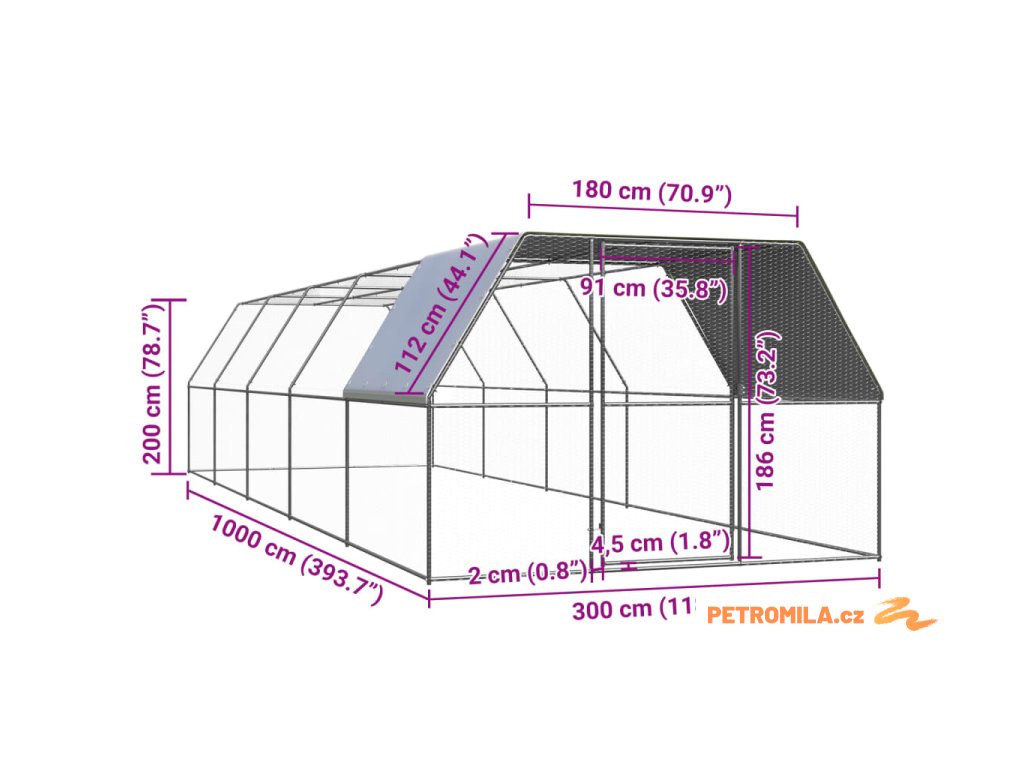 Tento výběh pro kuřata je vyroben z pozinkované oceli. Má polyethylenovou střechu, která je voděodolná a odolná vůči UV záření. Brána je vybavena zámkem, který zajišťuje větší bezpečnost a ochranu vašich malých zvířat.