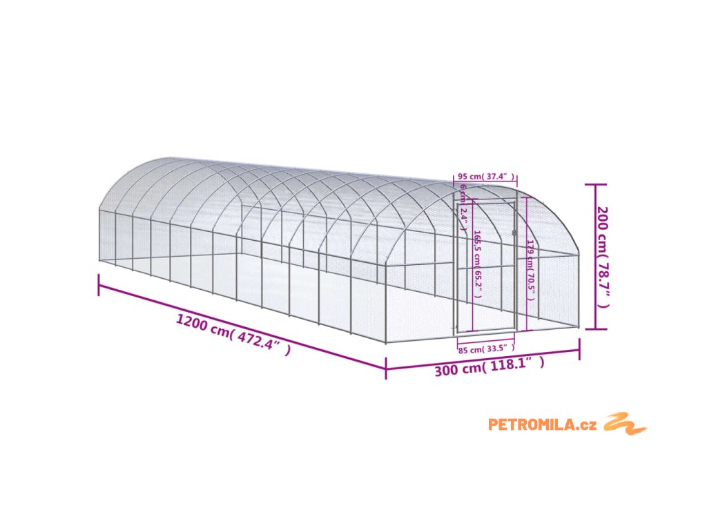Venkovní klec pro kuřata 3 x 12 x 2 m pozinkovaná ocel