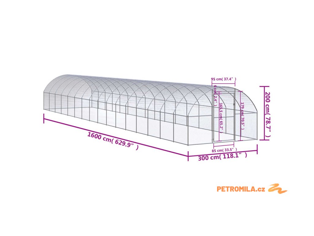 Venkovní klec pro kuřata 3 x 16 x 2 m pozinkovaná ocel