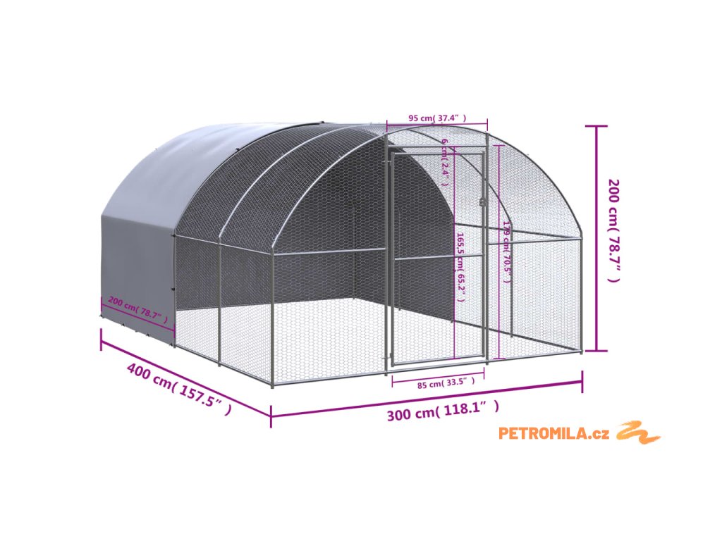 Venkovní klec pro kuřata 3 x 4 x 2 m pozinkovaná ocel