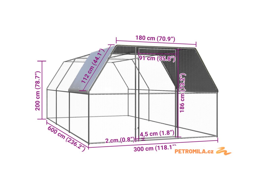 Venkovní klec pro kuřata 3 x 6 x 2 m pozinkovaná ocel
