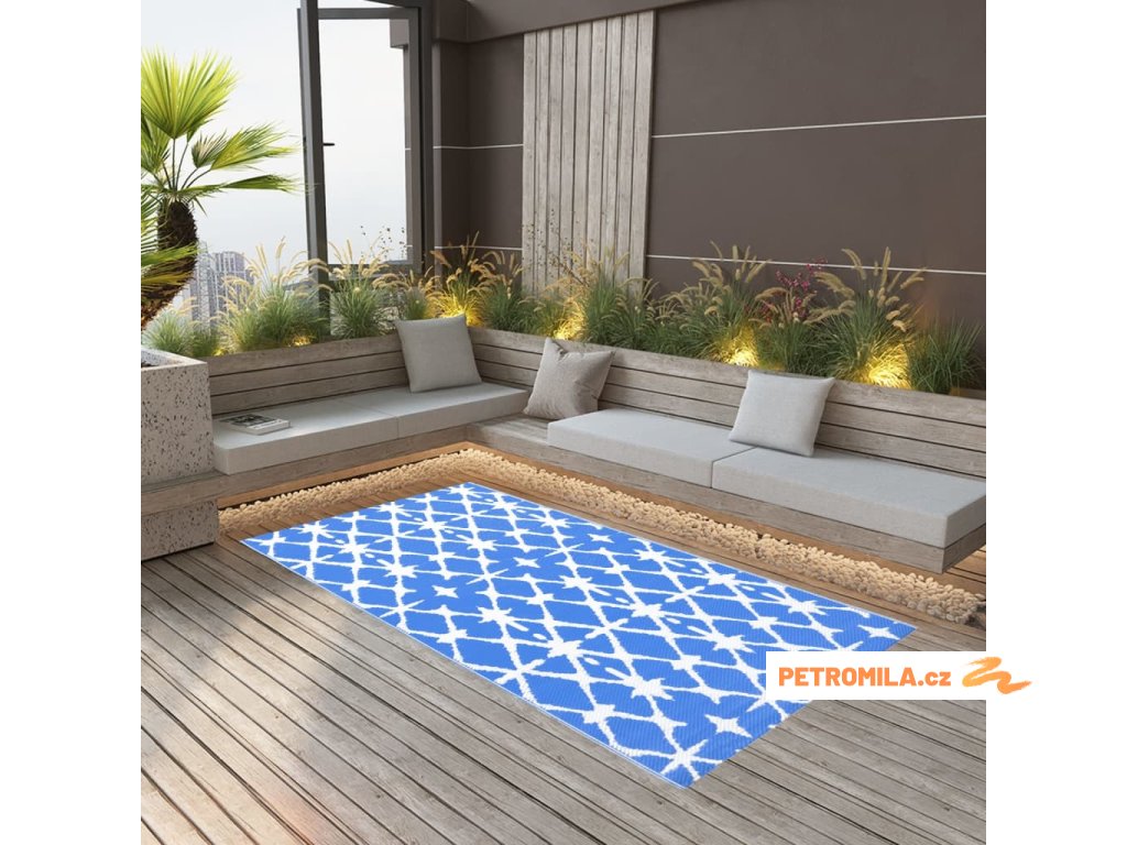Venkovní koberec ARAKIL modrý a bílý 120 x 180 cm PP