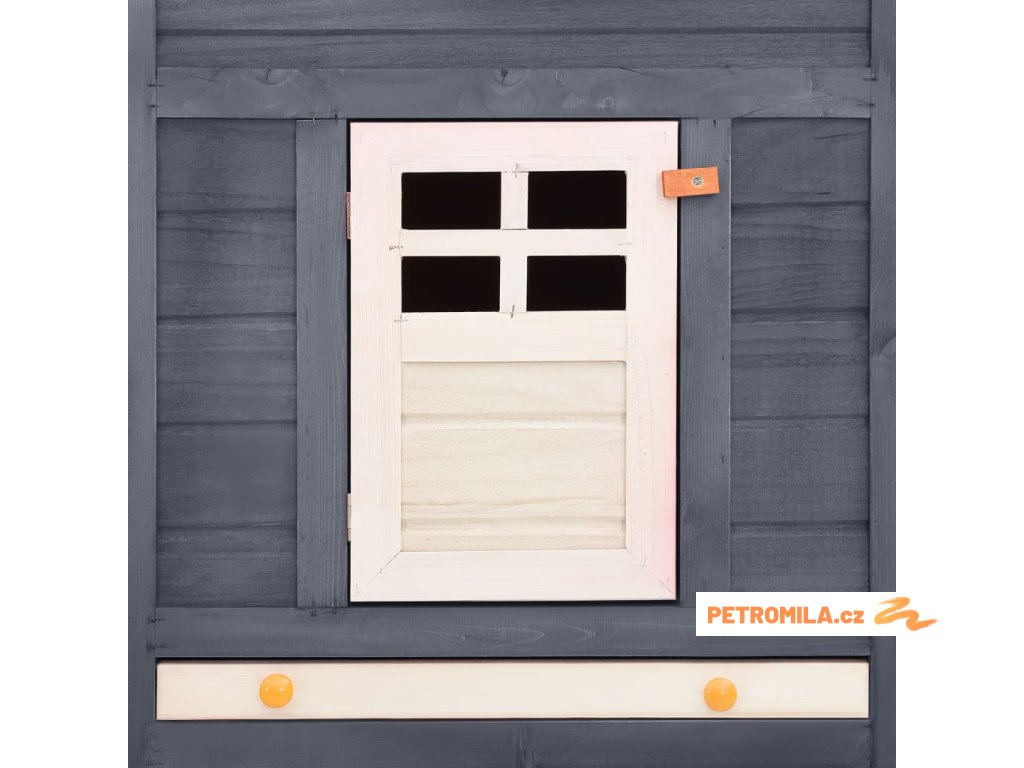 Venkovní králíkárna s výběhem šedo-bílá masivní jedlové dřevo