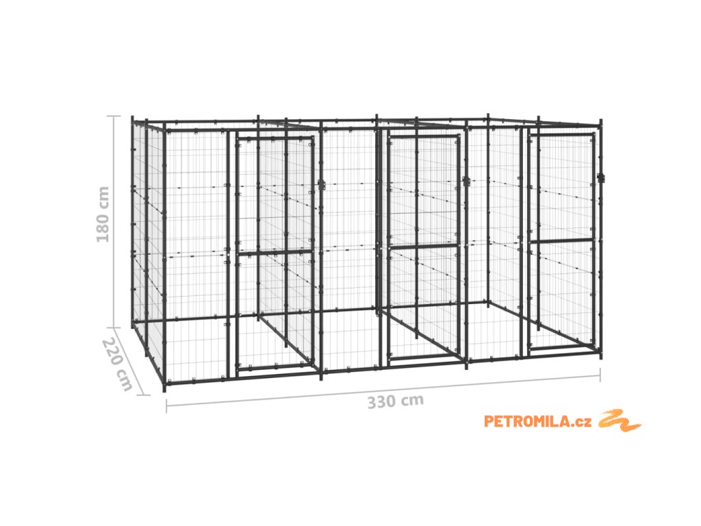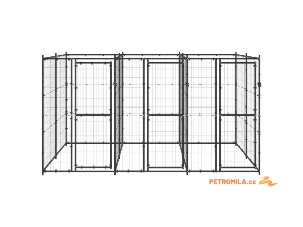 Psí kotec poskytne vašim psům spoustu prostoru k pohybu. Ocelové pletivo předchází neplechám a neočekávaným nehodám a pouští dovnitř čerstvý vzduch. Vzhledem k jeho robustní a pevné konstrukci z práškově lakované oceli má kotec velmi dobrou životnost a vydrží vám sloužit po dlouhá léta. Dvířka s panty jsou opatřená uzamykatelnou západkou, aby vašim pejskům zaručila mimořádné bezpečí.