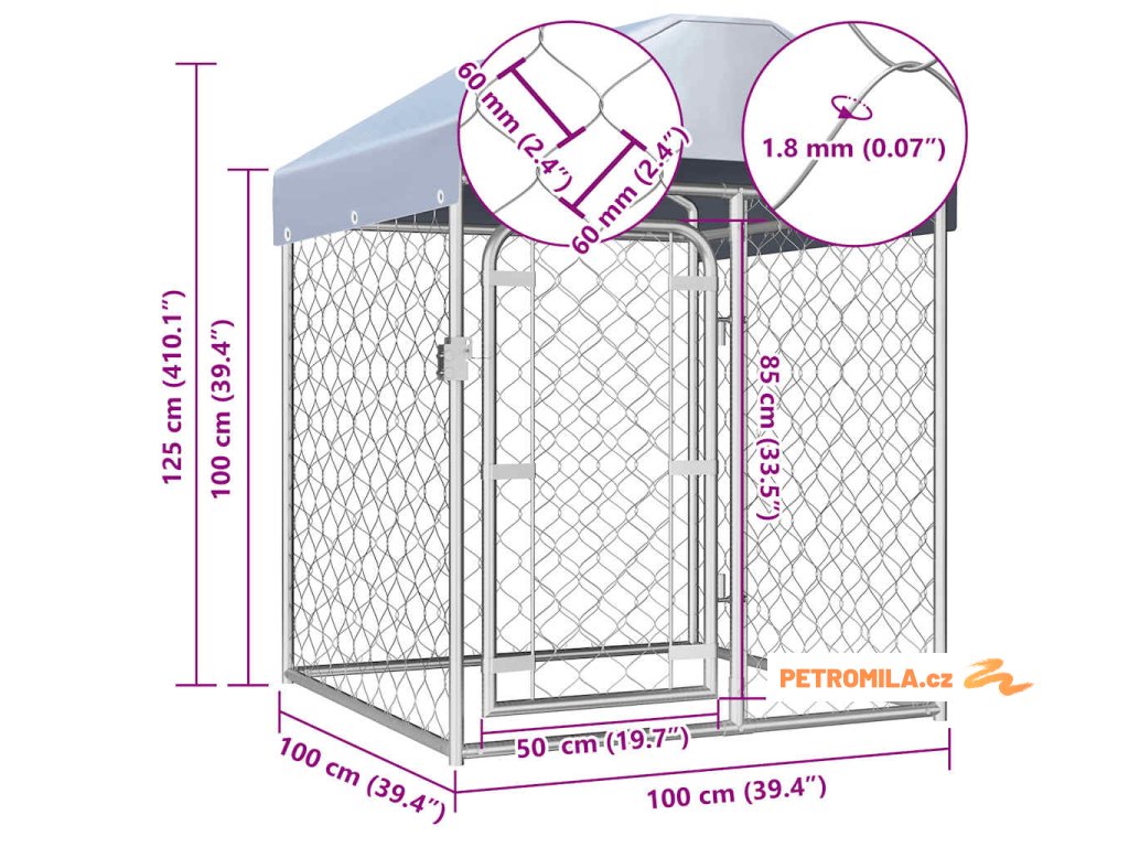 Venkovní psí kotec se střechou 100 x 100 x 125 cm