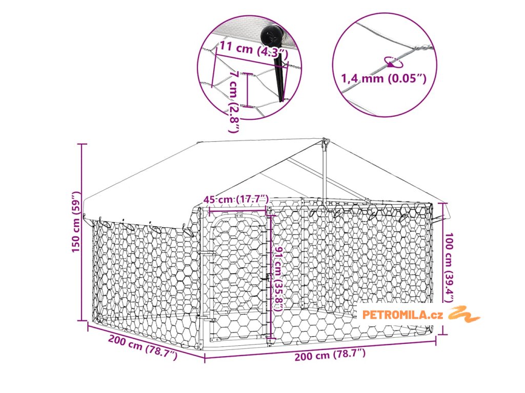 Venkovní psí kotec se střechou 200 x 200 x 150 cm