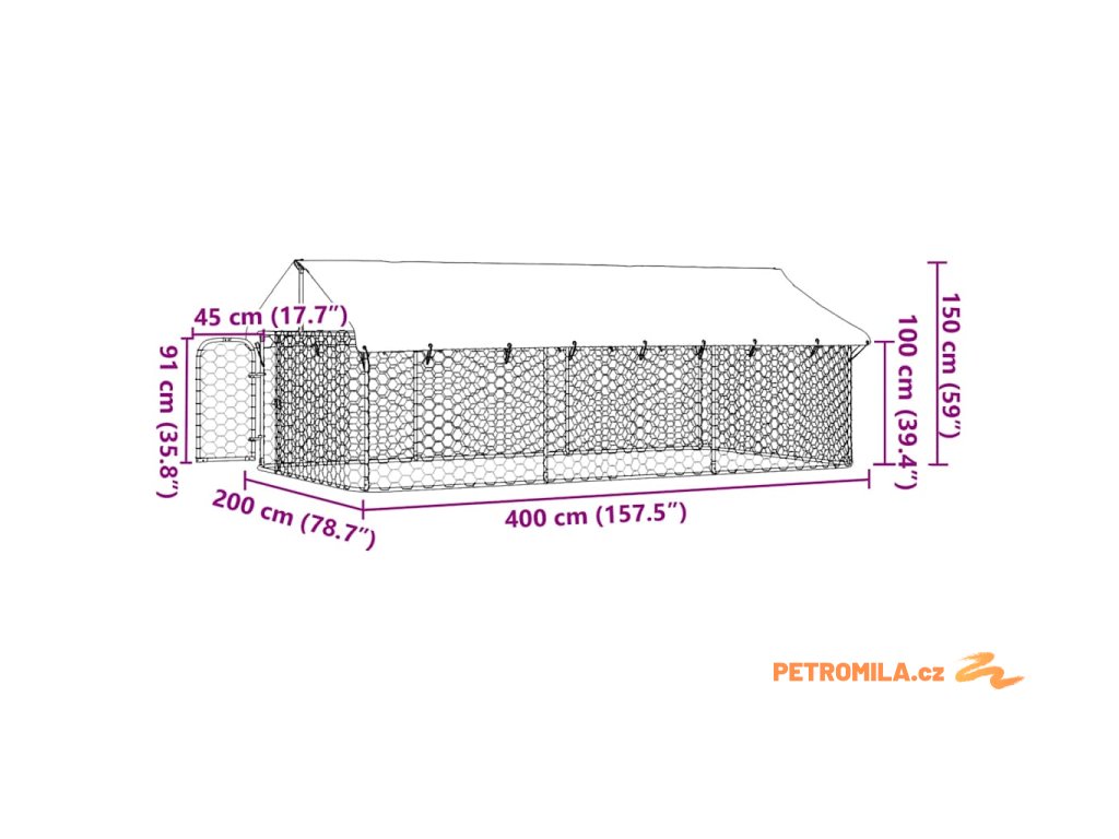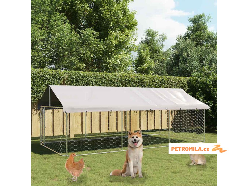 Venkovní psí kotec se střechou 400 x 200 x 150 cm