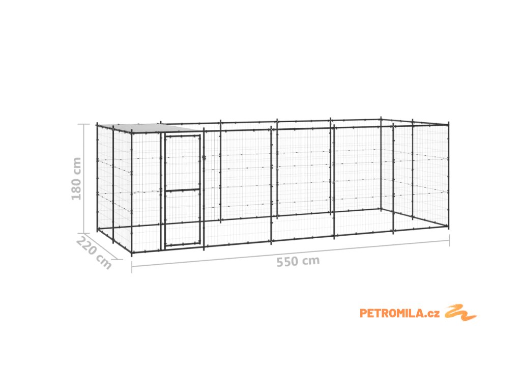 Venkovní psí kotec se střechou ocel 12,1 m²