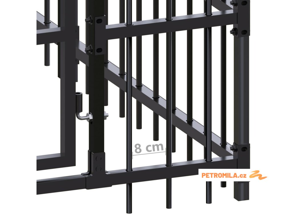 Tento psí kotec poskytuje dostatek prostoru pro cvičení. Stěny z ocelových tyčí pomáhají předcházet neplechám a neočekávaným nehodám a zároveň umožňují větrání. Díky robustní ocelové konstrukci s práškovým nástřikem je tento psí kotec odolný a vyrobený pro dlouhou životnost. Střecha chrání před sluncem, deštěm, sněhem a dalšími povětrnostními vlivy. Dveře s výklopnými dveřmi a uzamykatelným západkovým systémem zajišťují vašim psům větší bezpečnost a ochranu.
