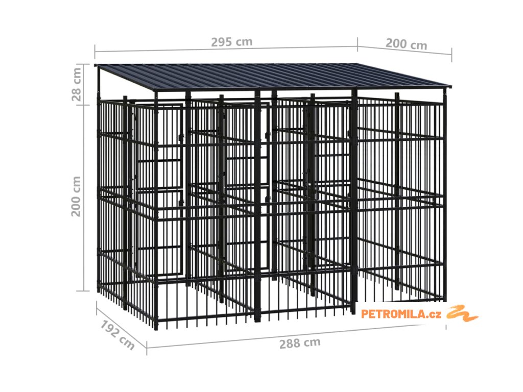 Venkovní psí kotec se střechou ocel 5,53 m²