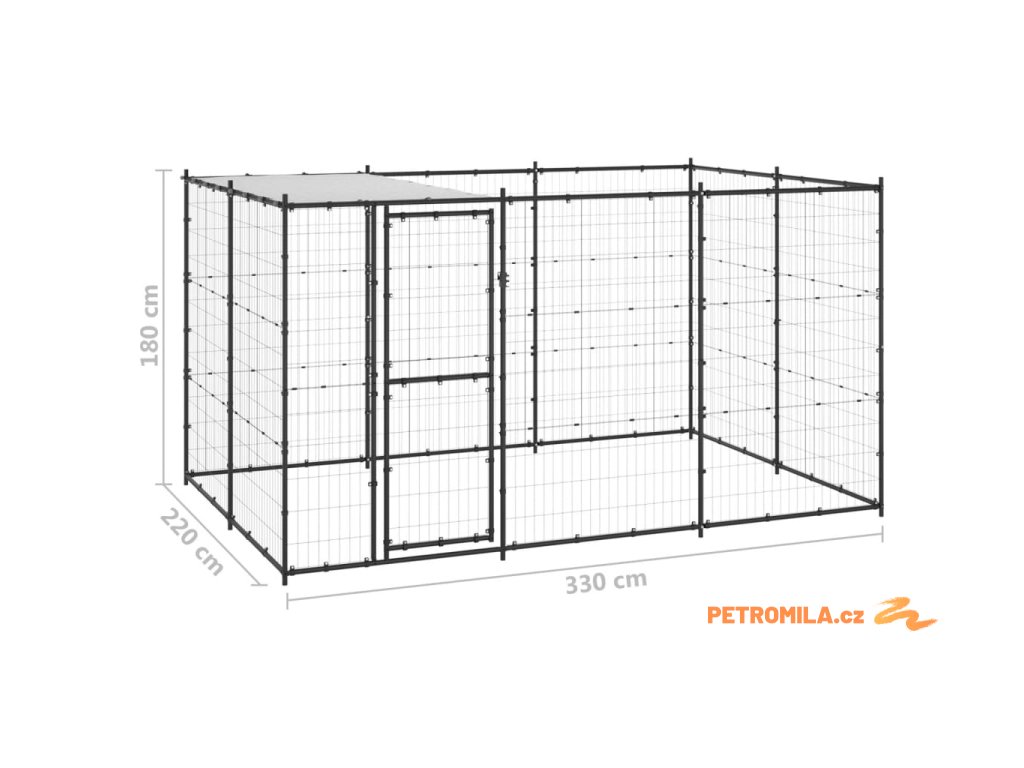 Venkovní psí kotec se střechou ocel 7,26 m²