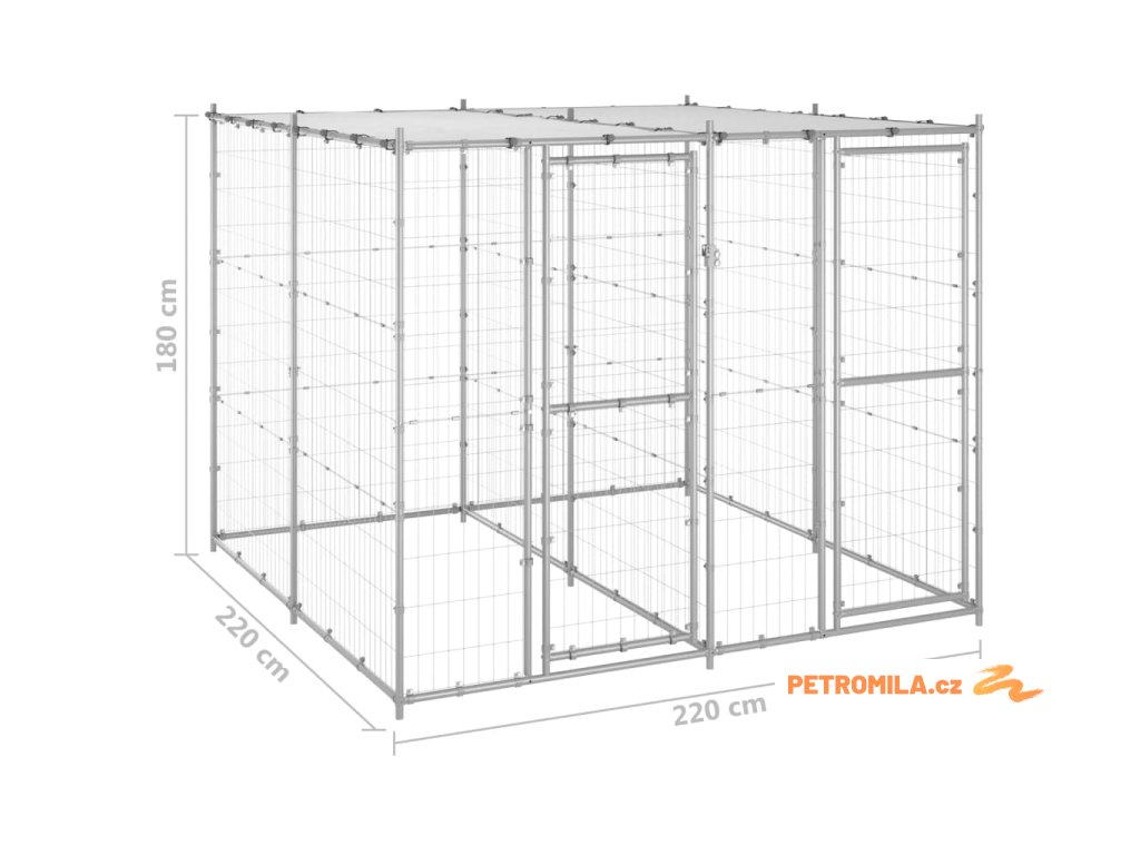 Venkovní psí kotec se střechou pozinkovaná ocel 4,84 m²