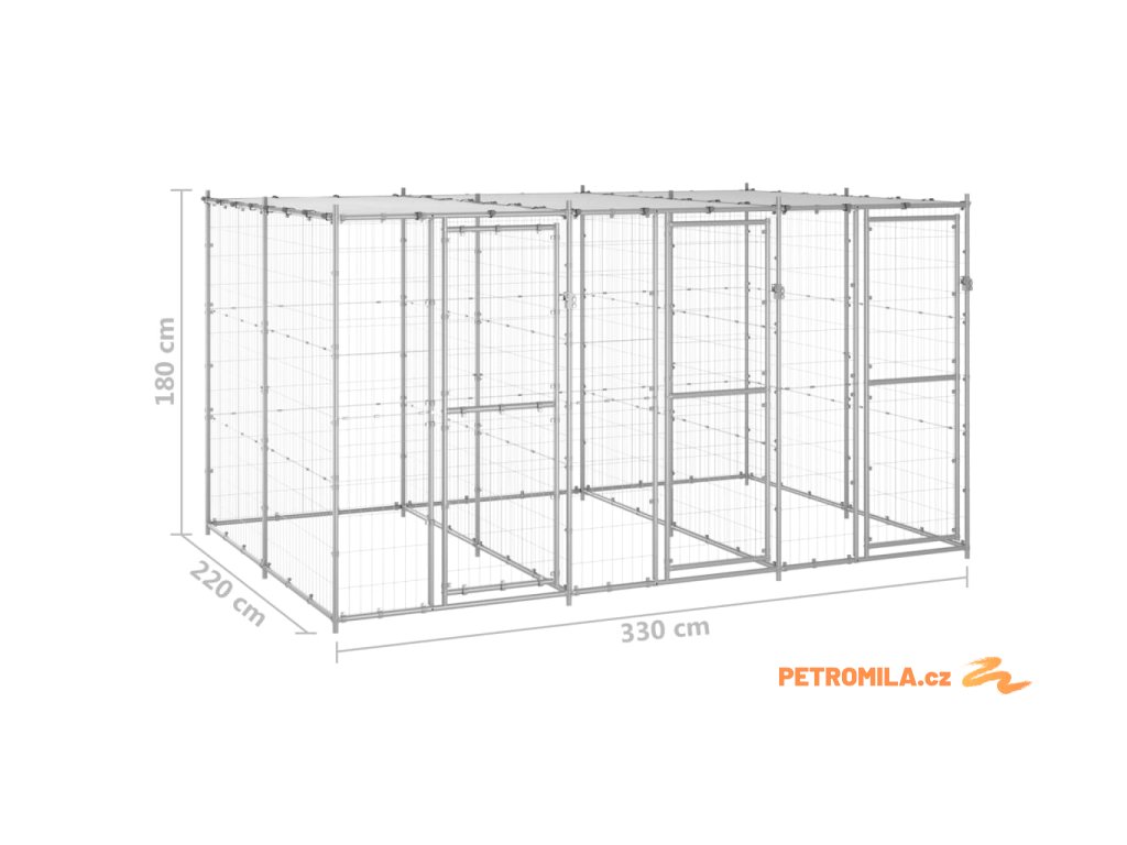 Venkovní psí kotec se střechou pozinkovaná ocel 7,26 m²