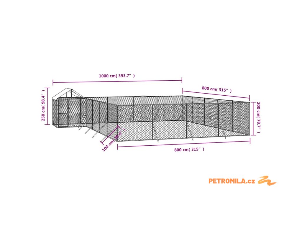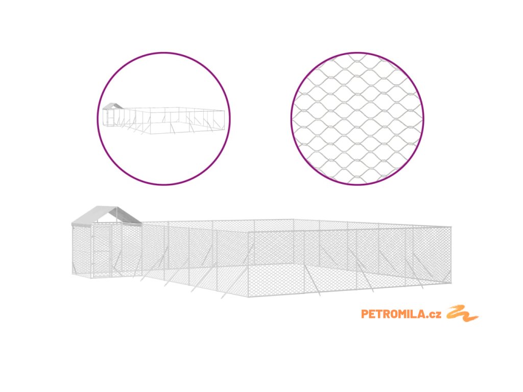 Venkovní psí kotec se střechou stříbrný 10 x 8 x 2,5 m ocel