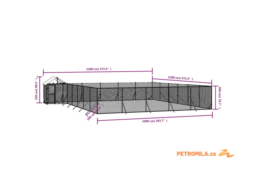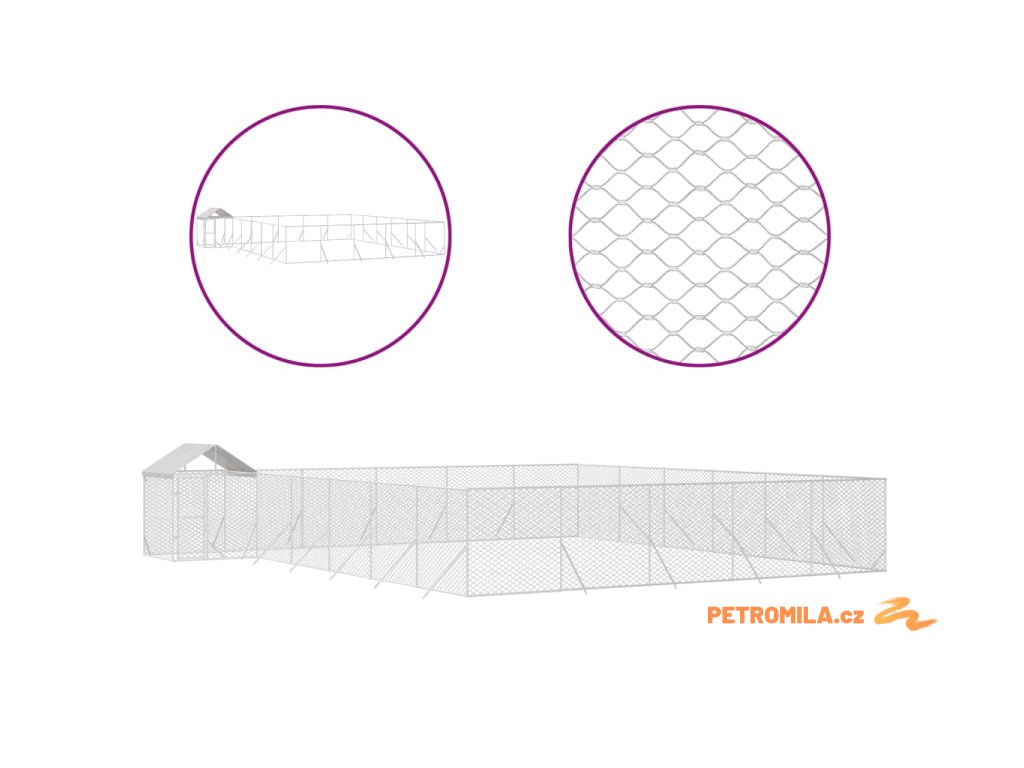 Venkovní psí kotec se střechou stříbrný 12 x 12 x 2,5 m ocel