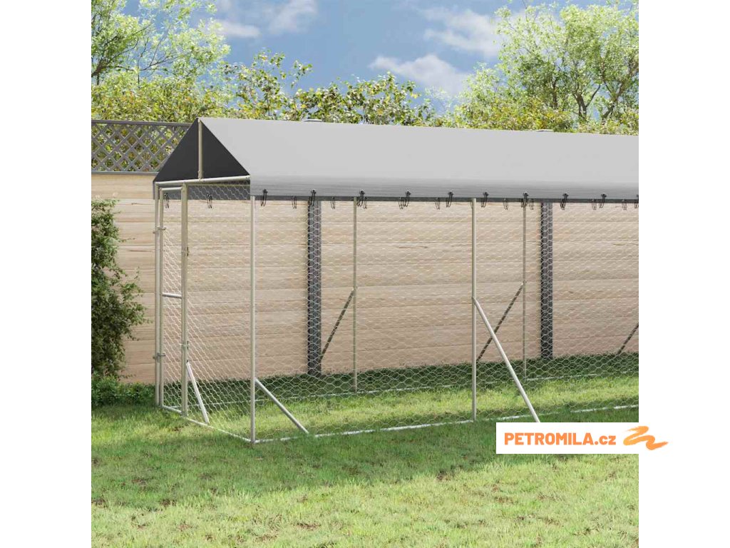 Venkovní psí kotec se střechou stříbrný 2 x 10 x 2,5 m ocel