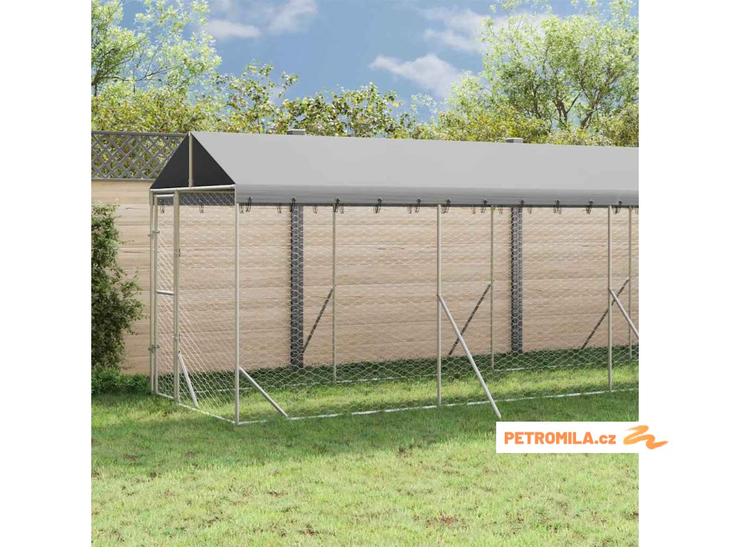 Venkovní psí kotec se střechou stříbrný 2 x 14 x 2,5 m ocel