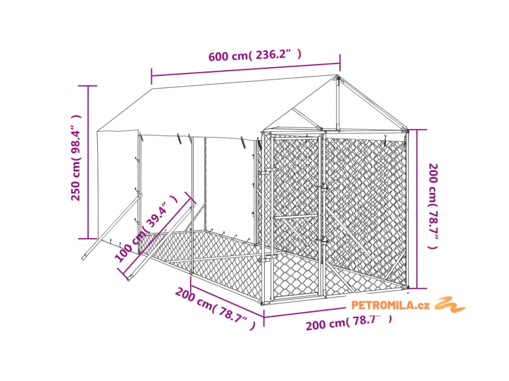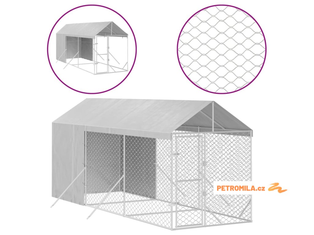 Venkovní psí kotec se střechou stříbrný 2 x 6 x 2,5 m ocel