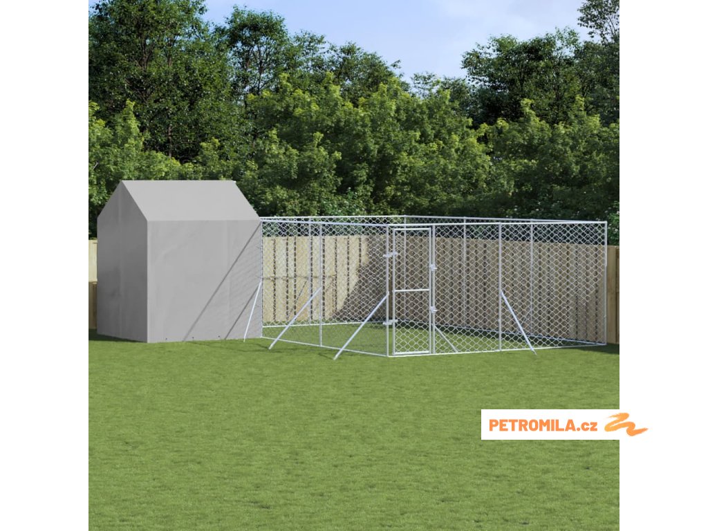 Venkovní psí kotec se střechou stříbrný 6 x 6 x 2,5 m ocel