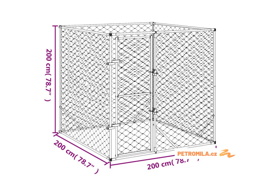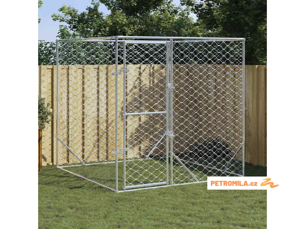 Venkovní psí kotec stříbrný 2 x 2 x 2 m pozinkovaná ocel