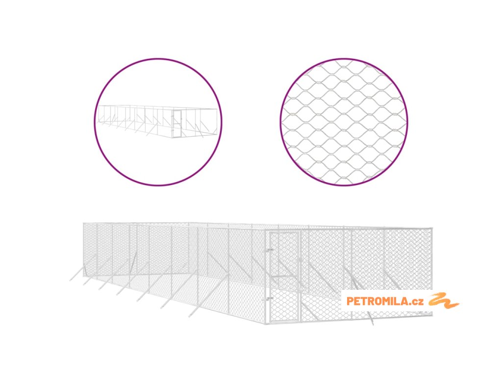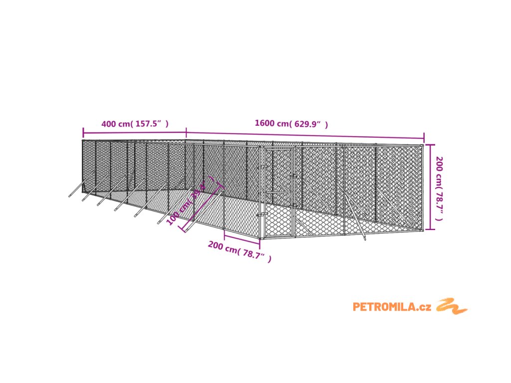 Venkovní psí kotec stříbrný 4 x 16 x 2 m pozinkovaná ocel