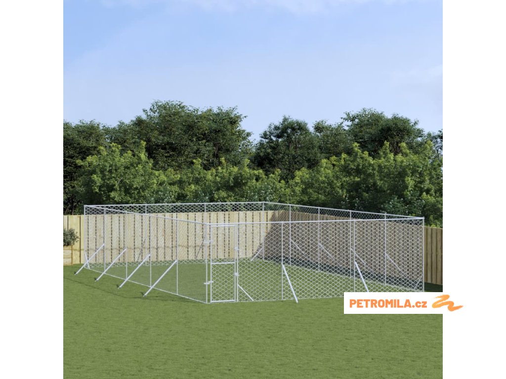 Venkovní psí kotec stříbrný 6 x 10 x 2 m pozinkovaná ocel