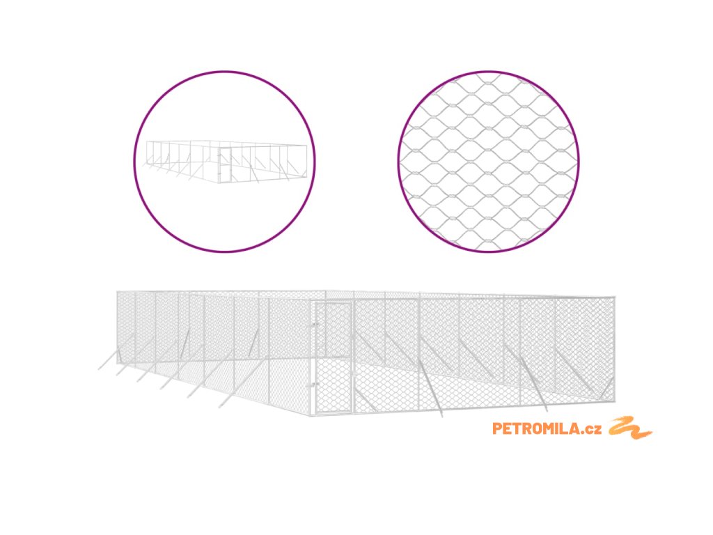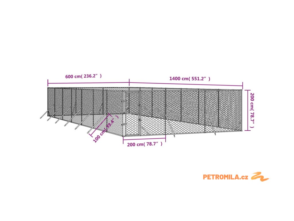 Venkovní psí kotec stříbrný 6 x 14 x 2 m pozinkovaná ocel