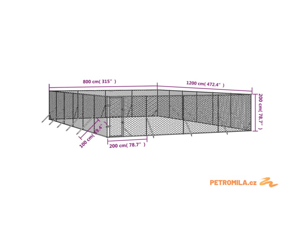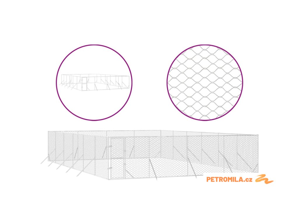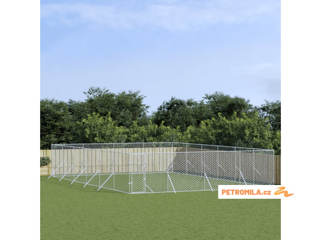 Venkovní psí kotec stříbrný 8 x 12 x 2 m pozinkovaná ocel