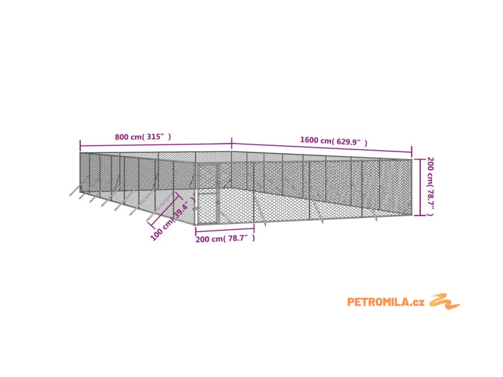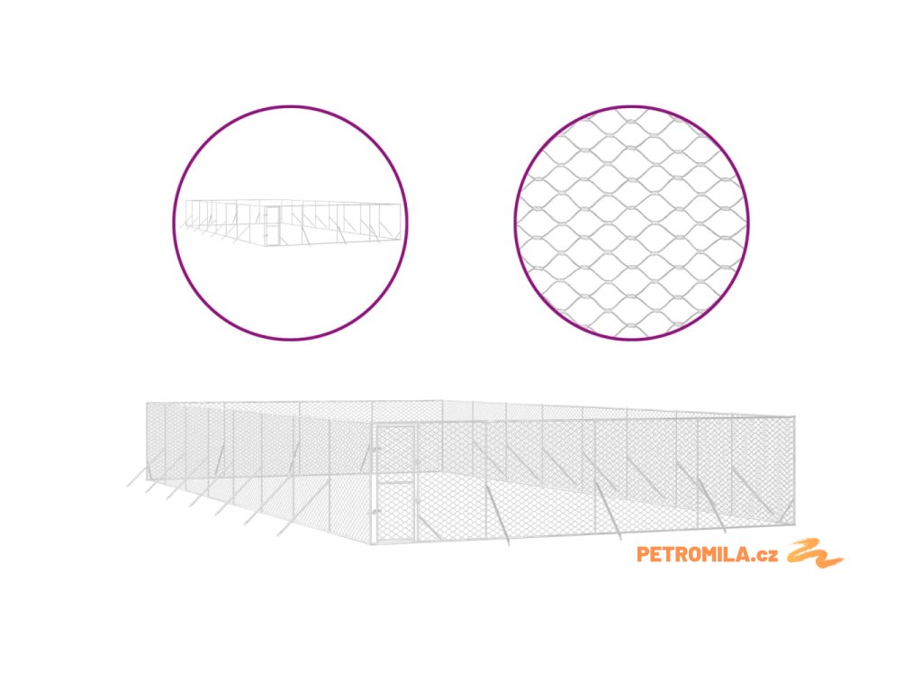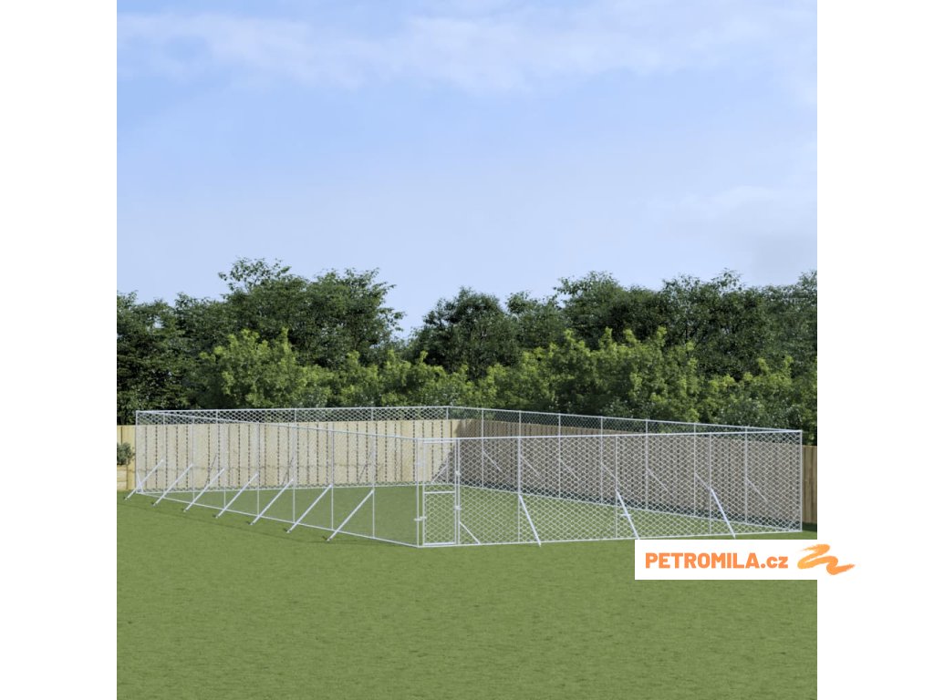 Venkovní psí kotec stříbrný 8 x 16 x 2 m pozinkovaná ocel