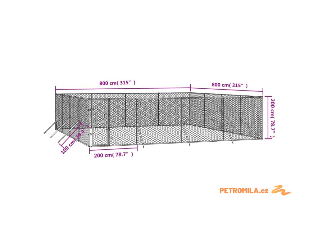 Venkovní psí kotec stříbrný 8 x 8 x 2 m pozinkovaná ocel