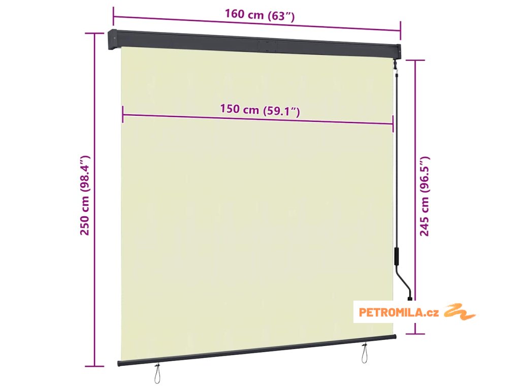 Venkovní roleta 160 x 250 cm krémová
