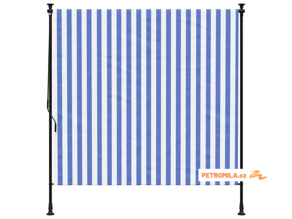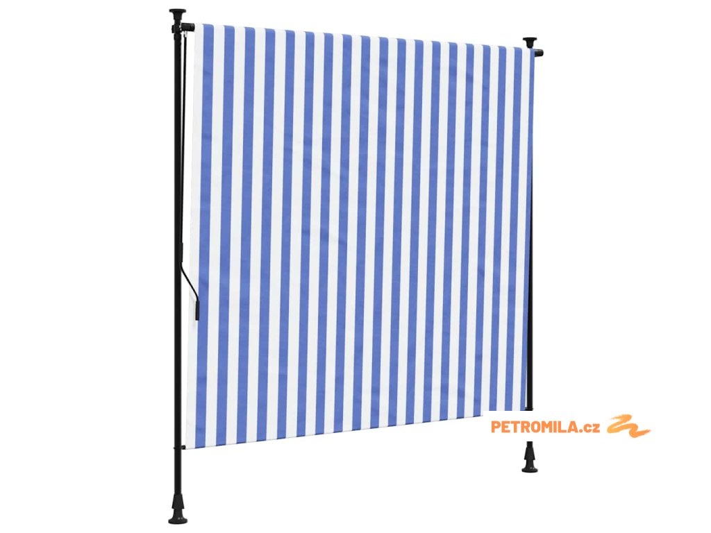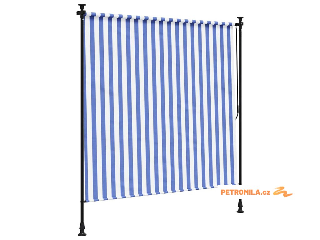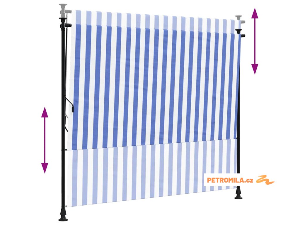 Venkovní roleta modrá a bílá 200 x 270 cm textil a ocel