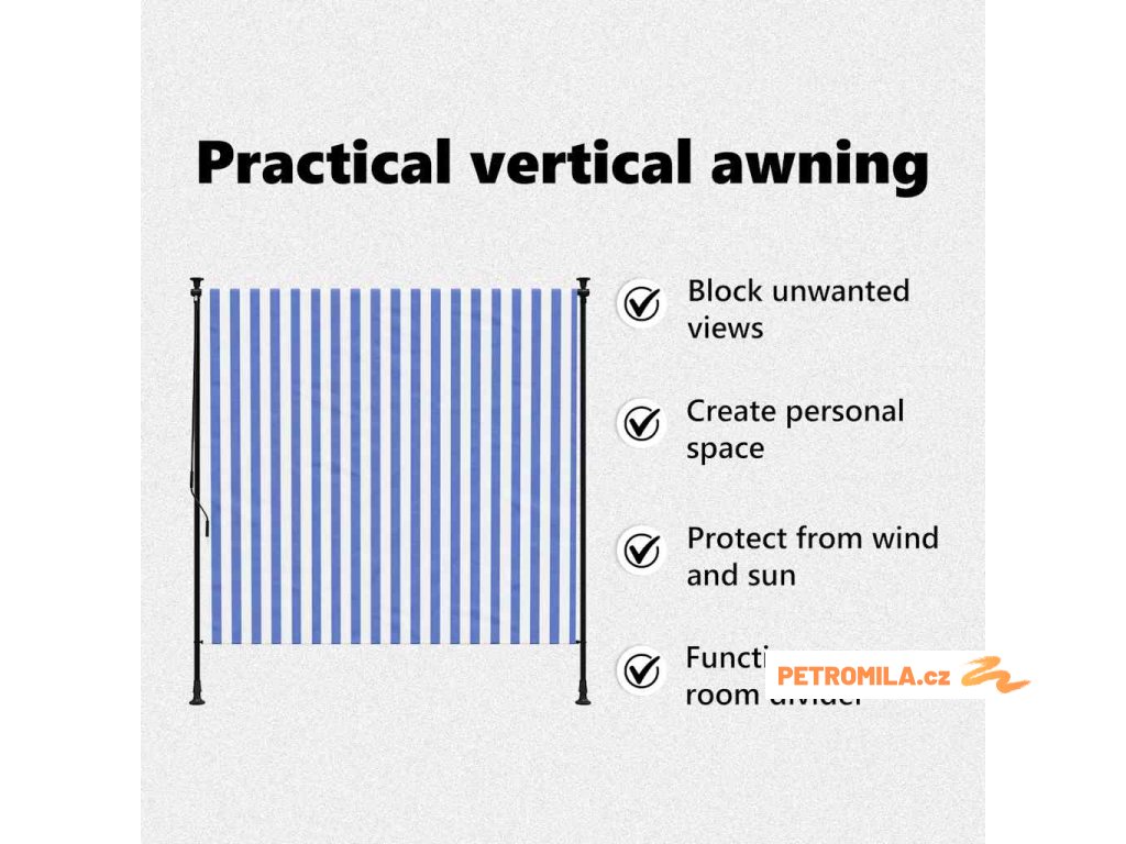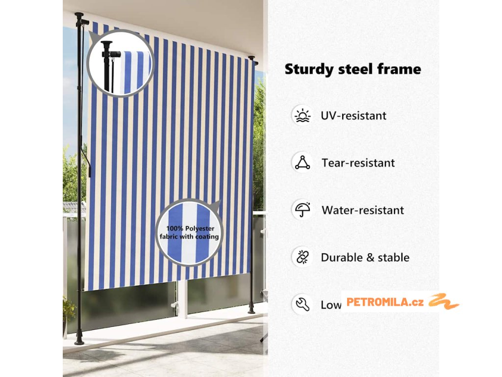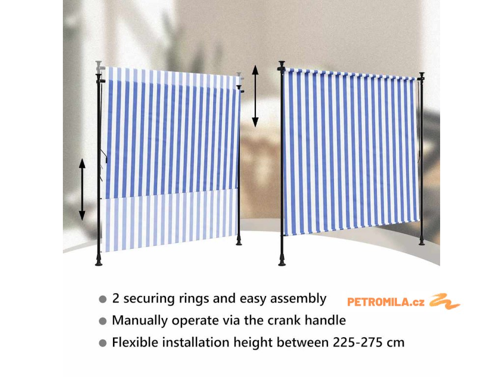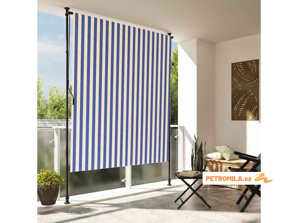 Venkovní roleta modrá a bílá 200 x 270 cm textil a ocel
