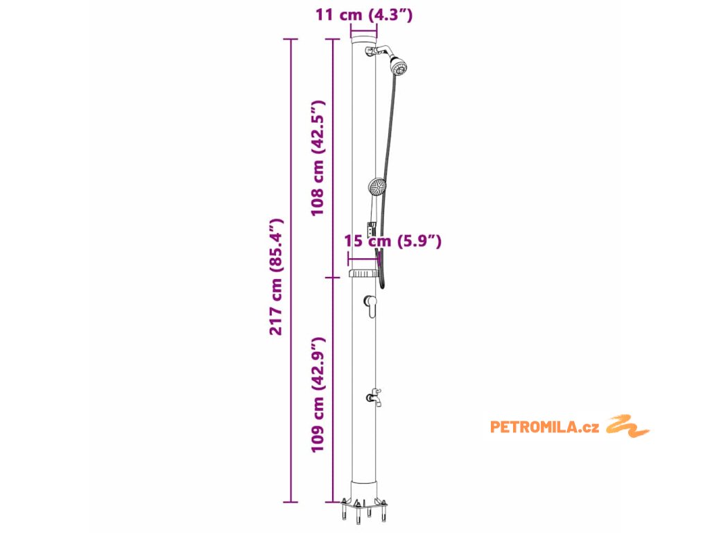Venkovní sluneční sprcha Černá 217 cm PVC a hliník