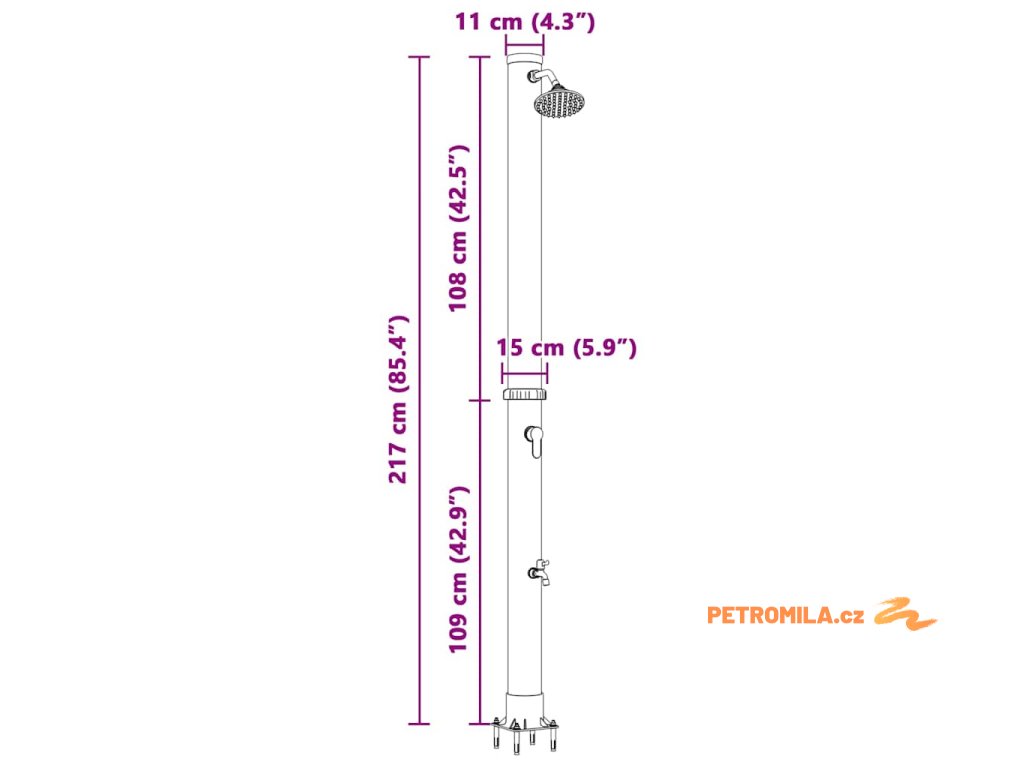 Tato venkovní solární sprcha přetvoří vaši zahradu na trendy útočiště díky svému elegantnímu, válcovému tvaru. Skvěle spojuje styl s praktikou, je pro ty, kdo mají rádi jednoduchost a efektivitu na svých venkovních prostorách. Užijte si osvěžující opláchnutí poháněné sluncem, ideální pro odpočinek u bazénu, a vychutnejte si minimalistický vzhled a funkční design.