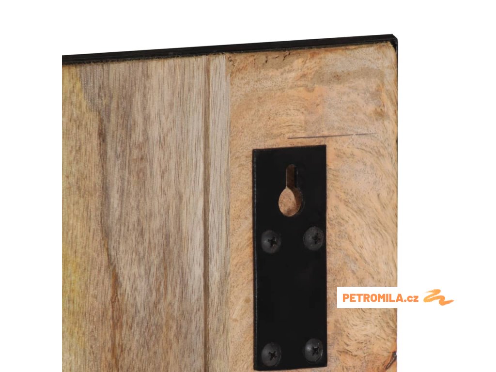 - Materiál: masivní hrubé mangovníkové dřevo s přírodním povrchem, práškově lakované železo