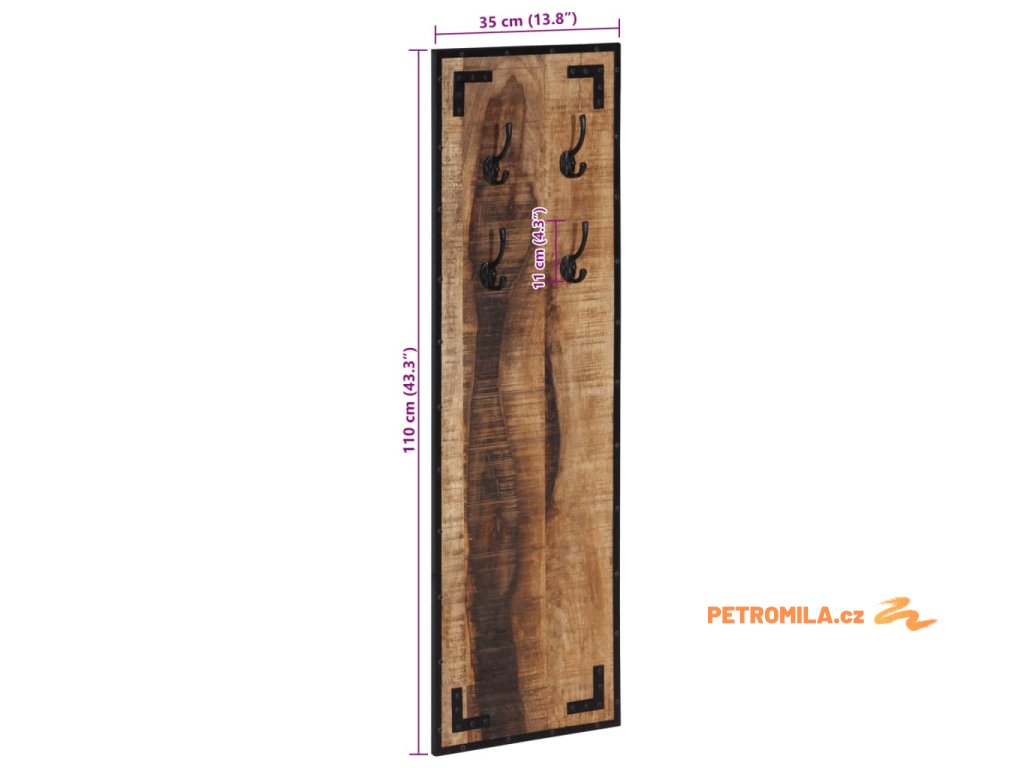 Věšák na kabáty 35x8x110 cm masivní hrubé mangovníkové dřevo