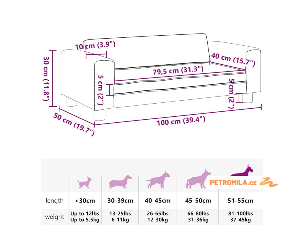 - Rozměry pelíšku por psy: 100 x 50 x 30 cm (Š x H x V)