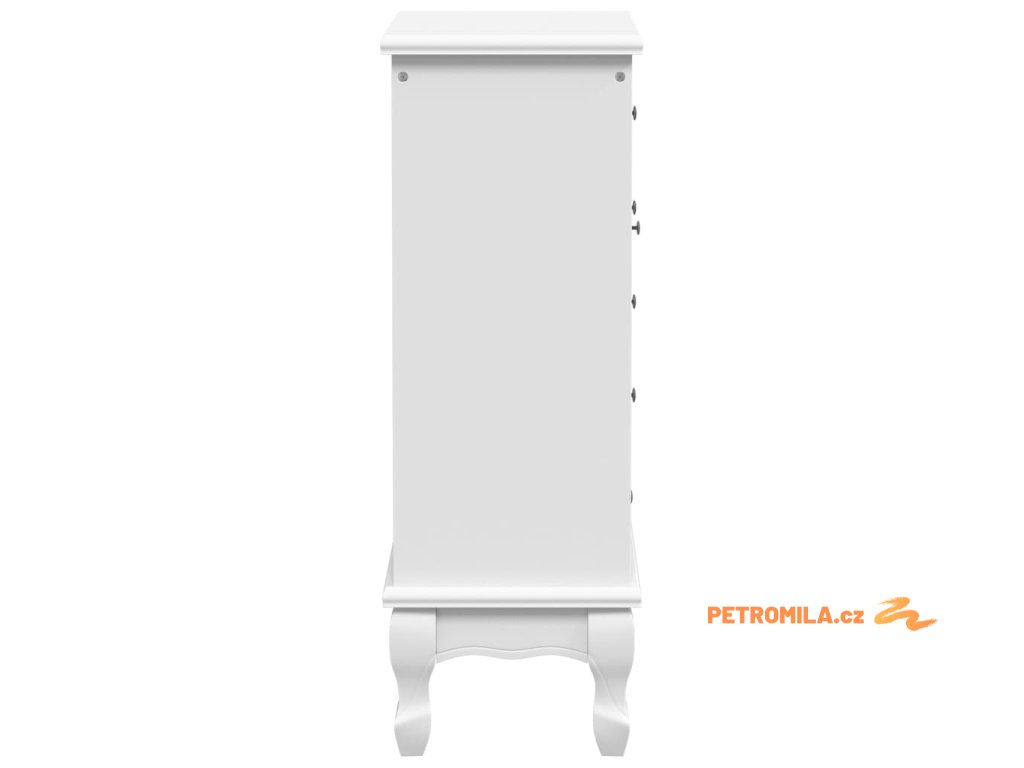 Skříňka je vyrobená z MDF a borového dřeva, opatřeného por vyšší odolnost bílým nátěrem, takže vám vydrží sloužit celou řadu let.