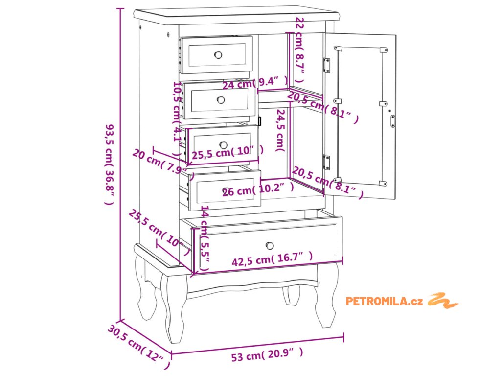 Tato skříňka se starožitným designem je skvělým úložným nábytkem do kanceláře, obývacího pokoje, ložnice atd. Zajisté se bude skvěle hodit do vaší ložnice, studovny, nebo dokonce i předsíně.
