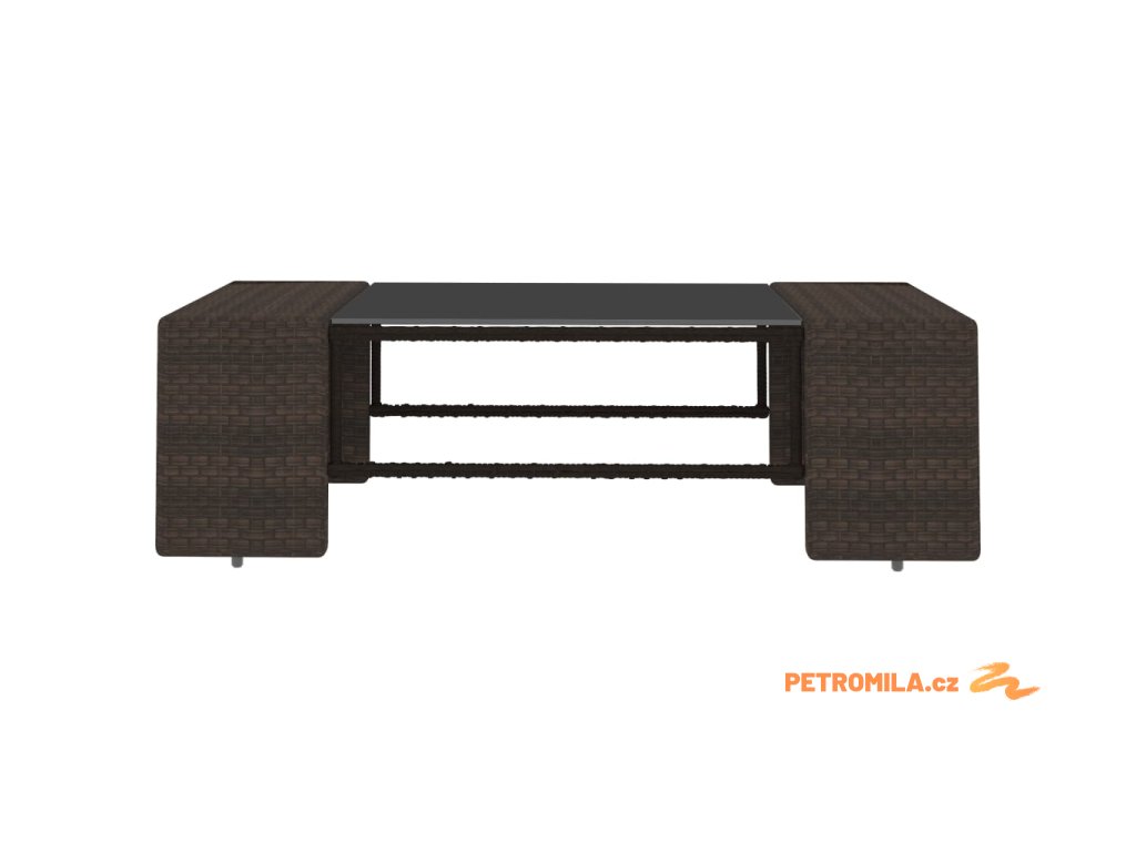 - Materiál: PE ratan, textil (100% polyester), práškově lakovaná ocel, tvrzené sklo