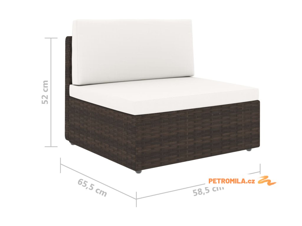 - Rozměry středové pohovky: 58,5 x 65,5 x 52 cm (Š x H x V)