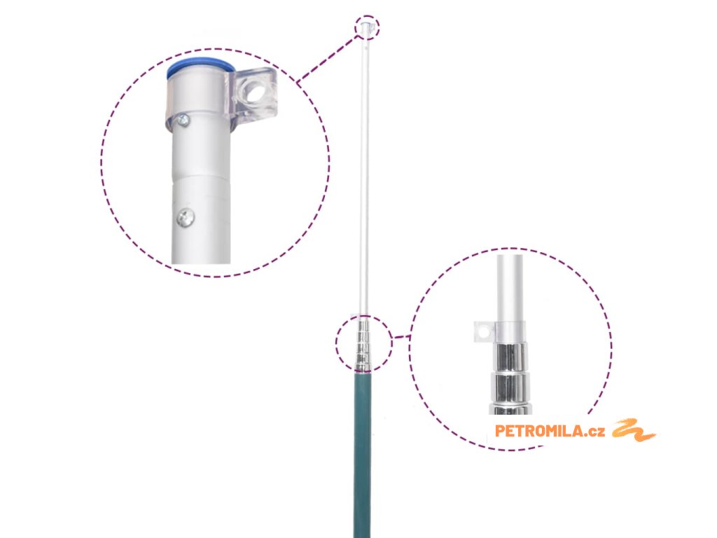 - Snadné ovládání: Vzhledem k jednoduchému zásuvnému systému lze stožár postavit během chvilky. Pomocí přiloženého lana a kroužků můžete vlajku bez problémů posouvat nahoru a dolů.