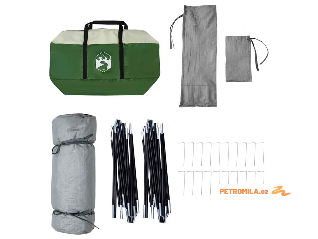 Odolná taffetová látka: Tento stan je vyroben z lehkého a pevného taffetového materiálu, který je trvanlivý a větruvzdorný. Ideální do teplého počasí, kombinace prodyšnosti a ochrany zajišťuje pohodlí po celé dny. Kompletní sada komponentů: Všechny potřebné věci pro snadné postavení stanice. S tyčemi pro stabilitu, šňůrami pro upevnění a kolíky, aby vše drželo na místě. Nosný vak usnadňuje transport a uskladnění. Každý prvek je důležitý pro funkčnost stanu. Funkční vlastnosti: Stan má moderní design s dvojitými zipovými dveřmi pro snadný přístup. Jedinečný E-port design zajišťuje elektrické připojení, což umožňuje pohodlné používání zařízení i na odlehlých místech. Uvnitř je užitečný háček na zavěšení pro skladování světel nebo vybavení. Všestranné využití: Vhodný jak pro rodinné akce, tak pro dobrodružné kempování. Obsahuje až tři místnosti pro různé velikosti skupin, takže zaručuje pohodlí v různých venkovních prostředích. Jednoduchá údržba: K montáži potřebujete základní nářadí jako paličku a dvě osob. Aby dlouho vydržel, je důležité stan důkladně osušit před uschováním, aby se předešlo plísním. Pravidelné kontroly zipů a spojení prodlouží jeho životnost.- Barva: Zelená