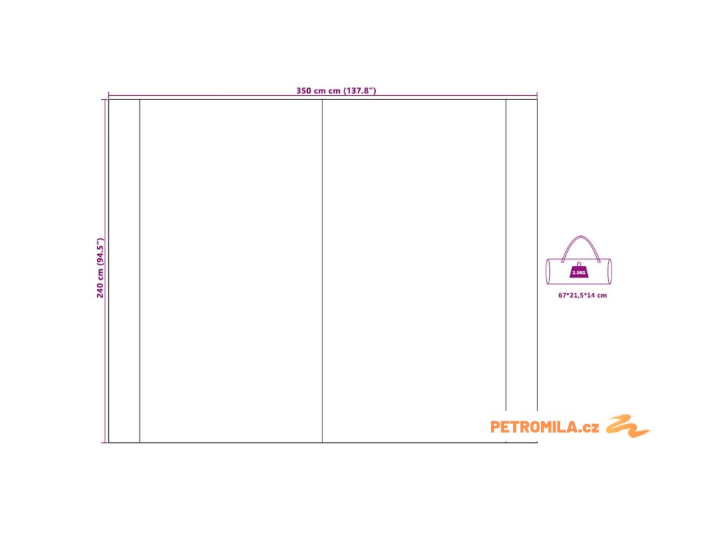 - Celkové rozměry: 350 x 240 cm (D x Š)