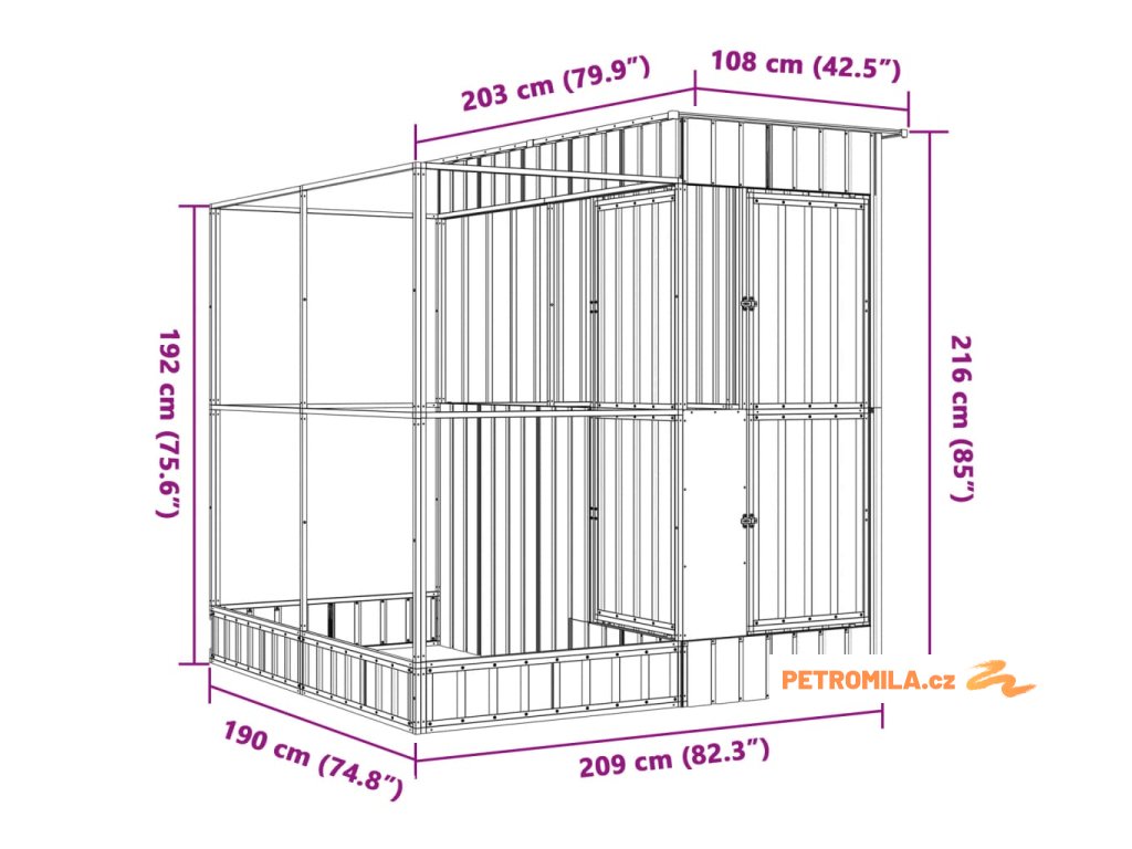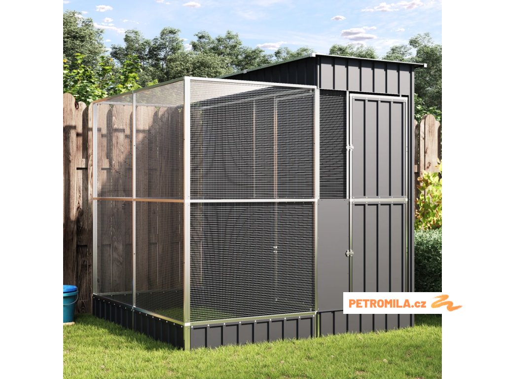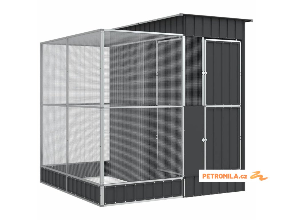 Voliéra s přístavbou stříbrná 209 x 203 x 216 cm ocelová