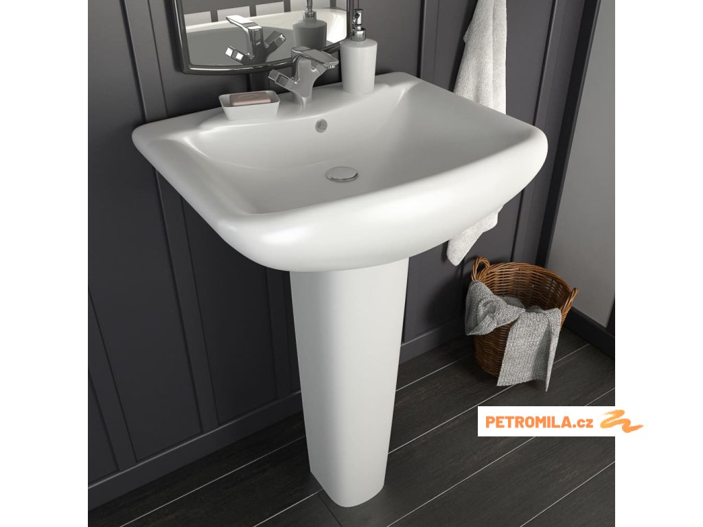 Naše volně stojící keramické umyvadlo sedí na podstavci. Zkrášlí každou koupelnu, umývárnu či převlékárnu.