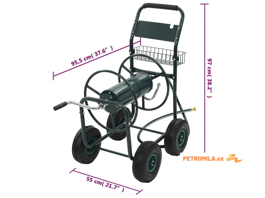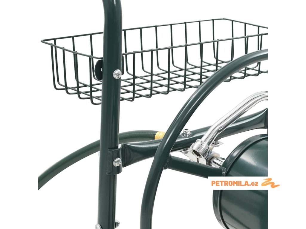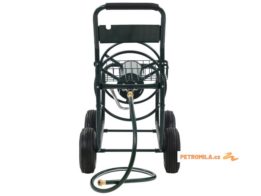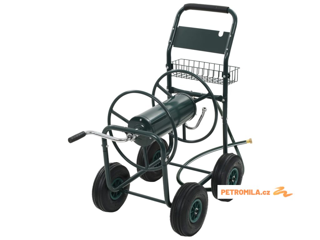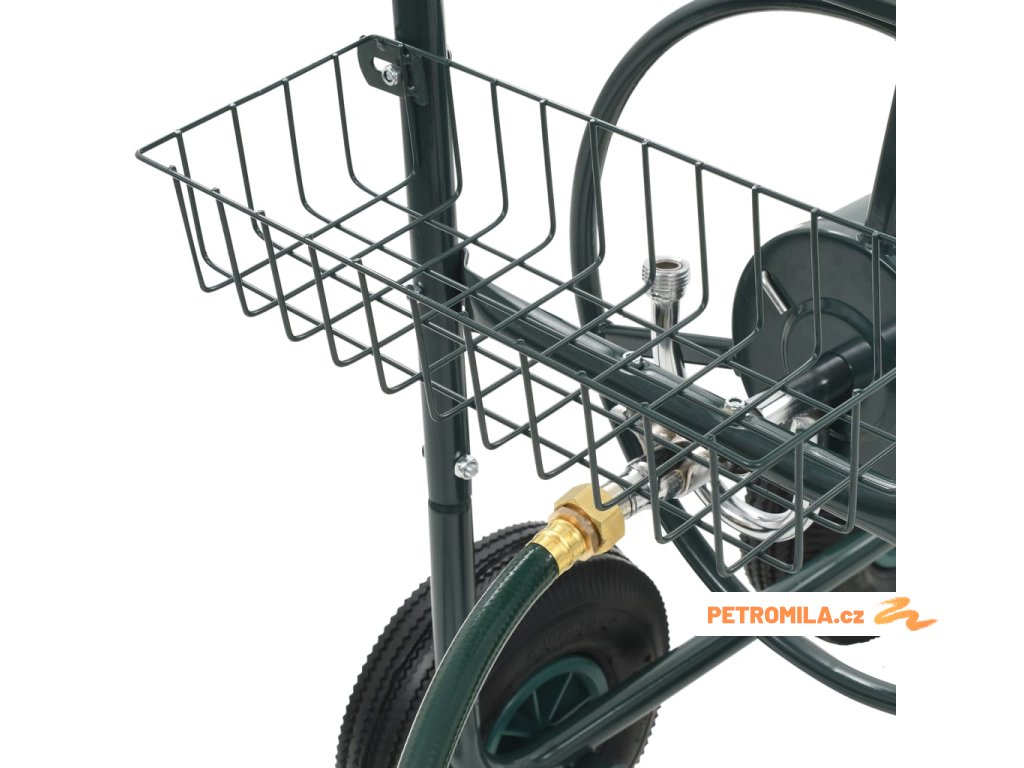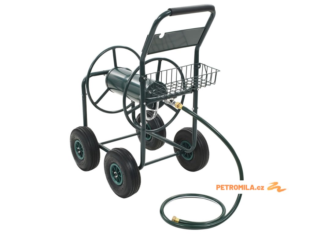 Vozík na zahradní hadici je zhotovený z oceli, je proto pevný a odolný. Rotující buben, který je součástí vozíku, usnadňuje svinutí hadice a brání jejímu zamotání a zkroucení. Vozík s navijákem na hadici je vybaven 4 neklouzavými pryžovými kolečky, jež umožňují hadici jednoduše a bezpečně převážet. Na vozíku nechybí ani praktický košík, kam si můžete ukládat své zahradnické nářadí.
