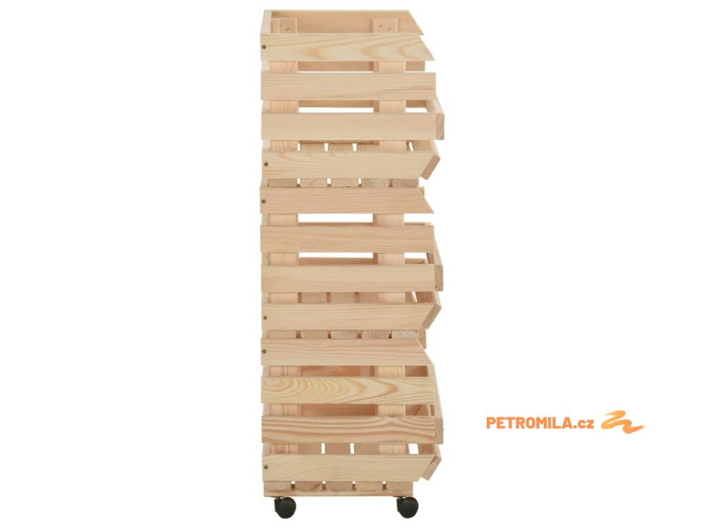 Bedýnkový vozík je vyrobený z masivního borového dřeva, takže je stabilní a odolný. Má 3 přihrádky pro umístění potravin, lahví a dalších nezbytností, které tak budete mít vždy po ruce. Jelikož má odnímatelnou konstrukci, můžete každou polici používat samostatně podle potřeby. Kuchyňský vozík je navíc vybavený kolečky pro snadné přesouvání.